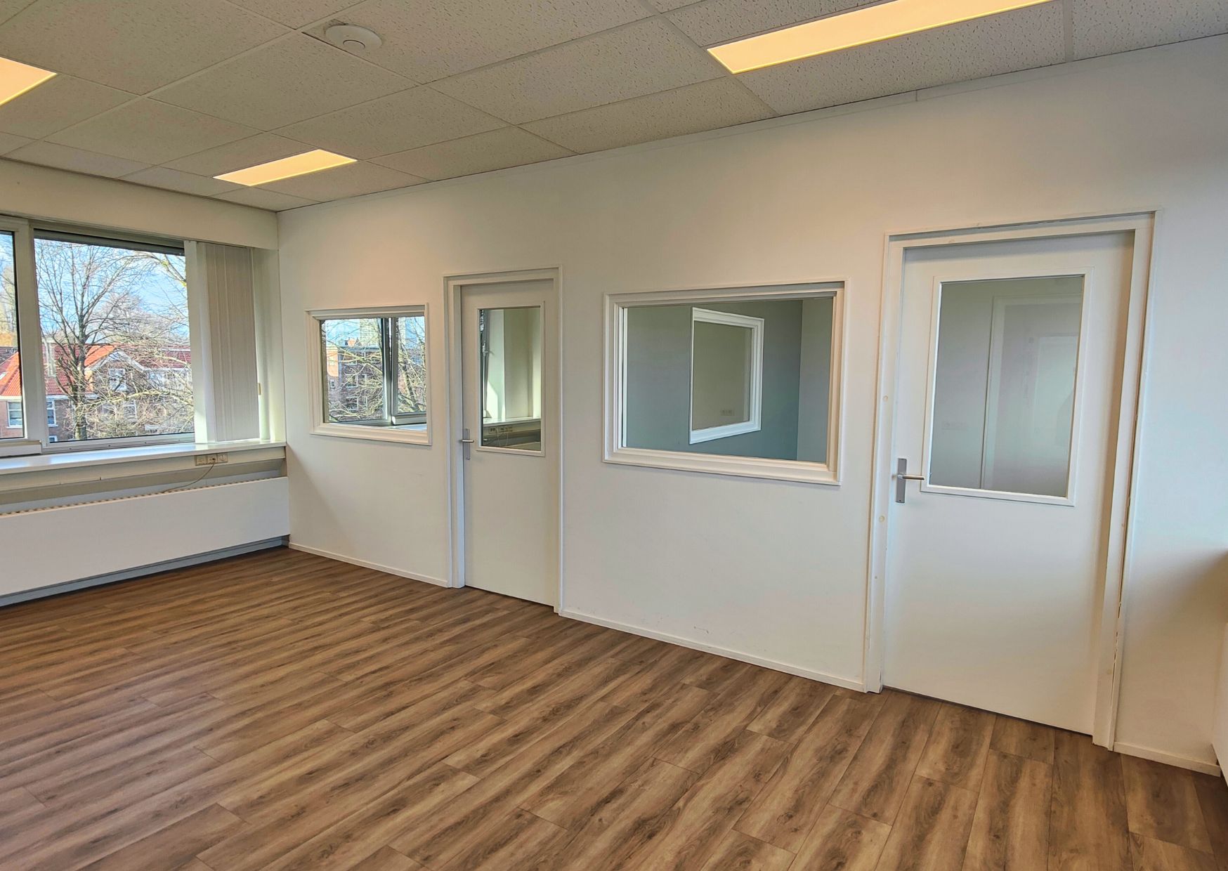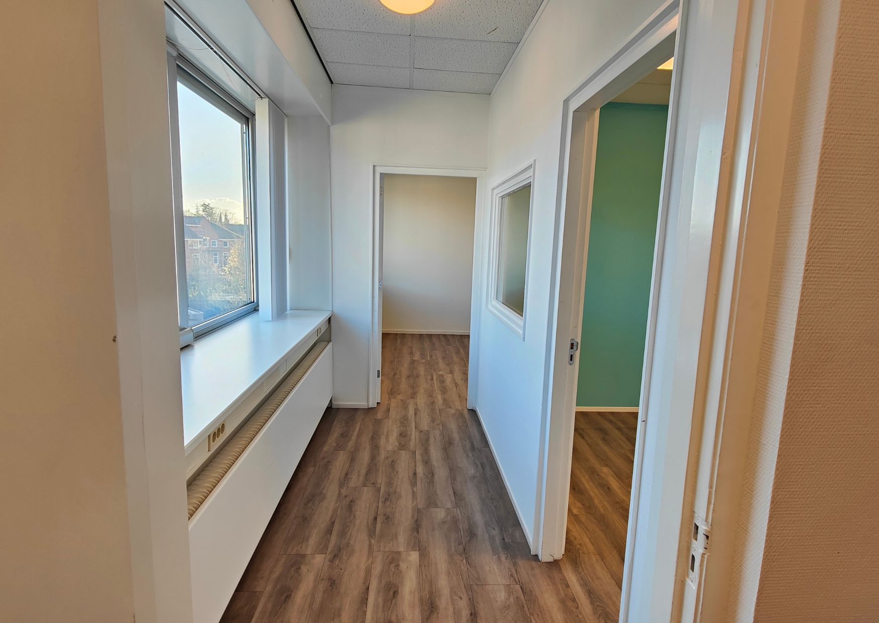 Met deze ruimte kun je alle kanten op. Richt het in als regulier kantoor, creëer een ontvangstzone met balie, of maak verschillende behandel- of werkruimtes. Het is maar net wat past bij jouw bedrijf. Door de grote ramen in iedere ruimte ontstaat er een open en lichte sfeer.
