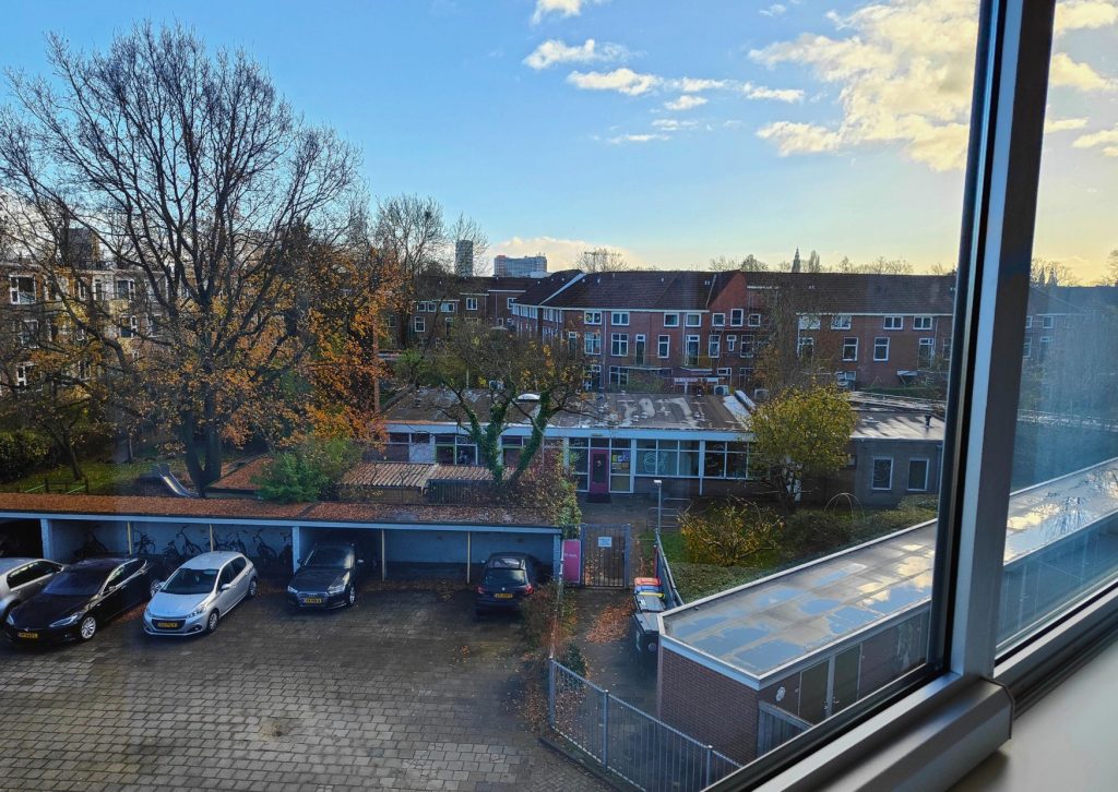 Aan de achterkant van het pand vind je een grote privé parkeerplaats. Je kunt tot drie parkeerplekken huren voor €50 per plek per maand.