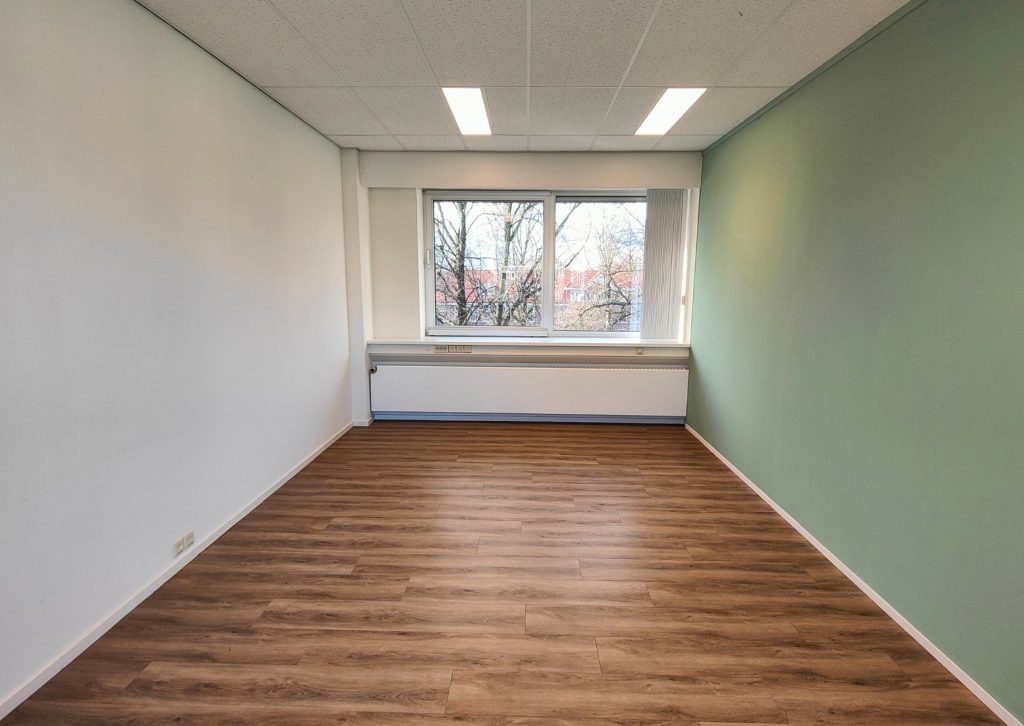 Het kantoor bestaat uit vijf afzonderlijke ruimtes in verschillende formaten en beschikt over toiletten en een pantry. Het keukenblok krijgt bovendien een nieuw keukenblad, zodat alles weer strak oogt. Ook de huidige lamellen zullen worden vervangen door moderne luxaflex. Daarnaast krijgt de entree in het trappenhuis een nieuwe, frisse look.