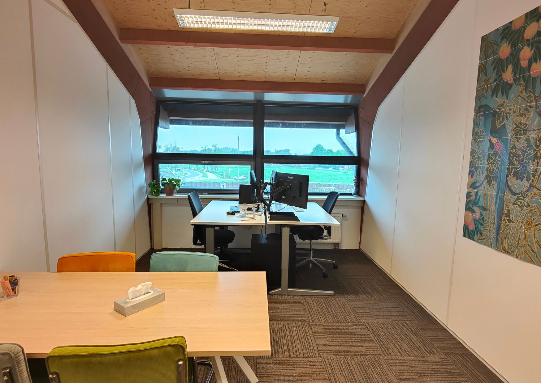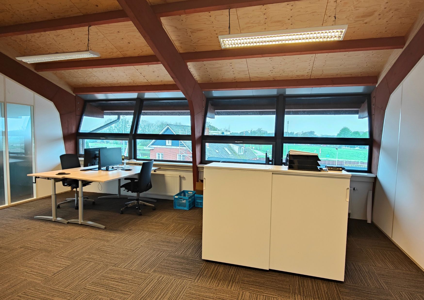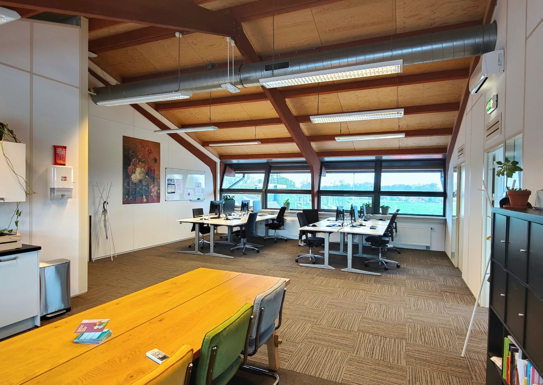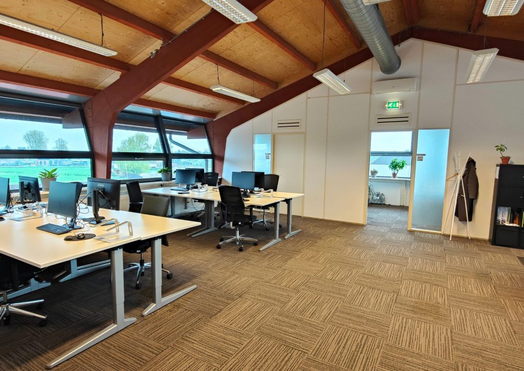 De ruimte is in totaal 225 meter² en is praktisch én veelzijdig ingedeeld. Er zijn twee ruime open werkruimtes, perfect geschikt voor meerdere werkeilanden. Daarnaast beschikt de verdieping over vijf afsluitbare kamers, ideaal voor gebruik als vergader- of ontvangstruimtes.